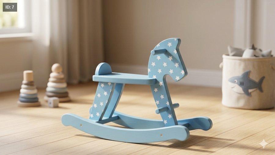 أضف لمسة من البهجة والكلاسيكية إلى غرفة طفلك مع الحصان الهزاز الأزرق المزين بالنجوم. ليس مجرد لعبة، بل هو رفيق طفلك في مغامراته الخيالية الأولى!